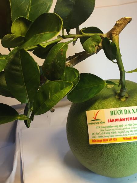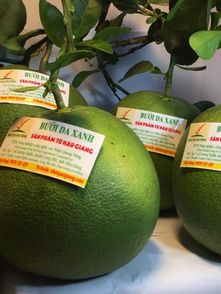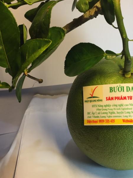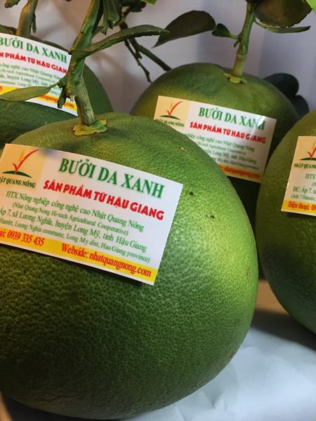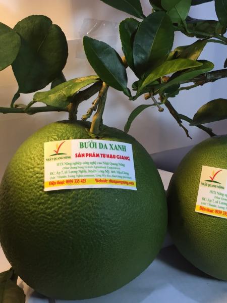 Bưởi da xanh Nhật Quang Nông được trồng trên vùng đất phì nhiêu của huyện Long Mỹ, tỉnh Hậu Giang. Màu vỏ trái xanh đậm, thịt trái màu đỏ, hồng, đặc biệt thịt trái mền, không hạt và có vị ngọt thanh. Đặc biệt bưởi da xanh này là thành quả lao động vất vả của người nông dân trên địa bàn huyện Long Mỹ khi chuyển từ trồng lúa sang trồng bưởi da xanh.